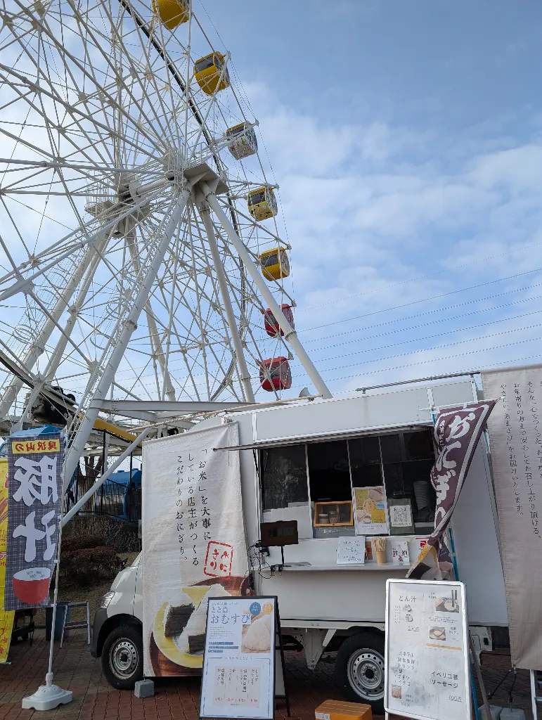 今日は碧南市の明石公園でキッチンカーを出店中です!🌟観覧車のすぐ下で、おいしいおにぎりと温かい豚汁、さらに甘酒を販売しています🍙🥣🍶季節の変わりめこの季節、周りの景色を楽しみながら、一息つきにいらっしゃいませんか?私たちのキッチンカーは、地域の皆さんに寄り添いながら笑顔をお届けしたいという想いでいっぱいです💪😊